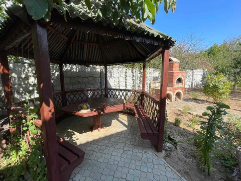 Дом: двухэтажный из Крымского ракушняка 82 кв.м. Перекрытия железобетонное. Санузел в доме. Вся мебель и техника остаются.