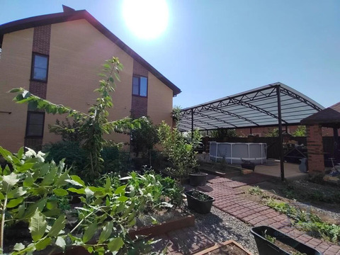 Въезд для автомобиля оборудован навесом и электрическими воротами. На территории имеется зона для мангала и отдыха, а также сад, где можно выращивать фрукты и овощи.