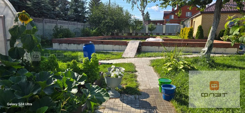 Забор по всему периметру. Благоустроенная территория с газоном и насаждениями, теплица и баня-сруб.