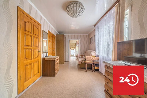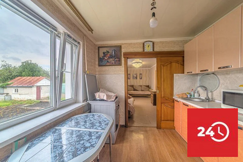 2 изолированные комнаты 28,4 кв.м и 16,3 кв.м. Так же гостиная комната (проходная) 15,8 кв.м. Кухня 7 кв.м (остается кухонный гарнитур, плита, обеденный стол и стулья). Туалет в доме и во дворе.