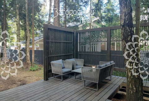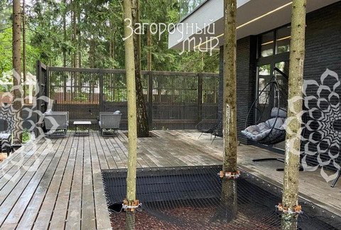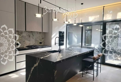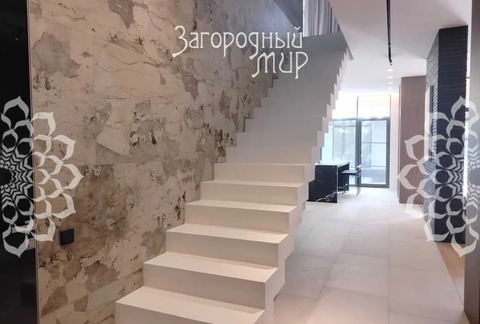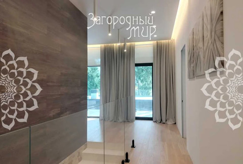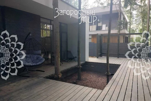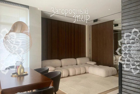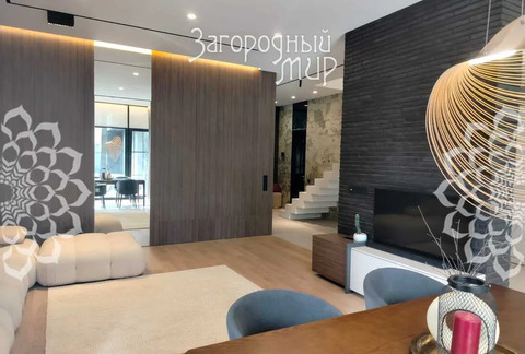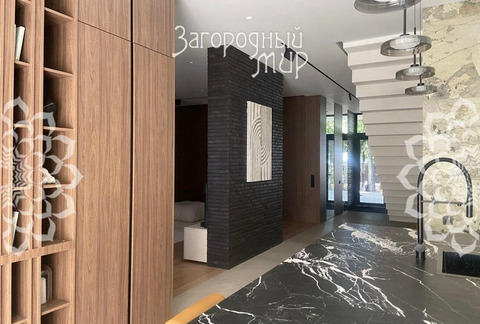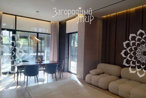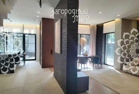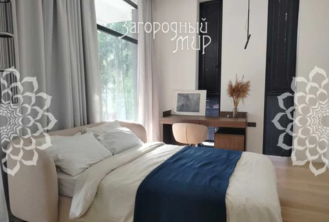 В доме 3 спальни с гардеробными и санузлами, гостиная-столовая, полностью оборудованная кухня, кабинет. Дом полностью меблирован, вся мебель сделана на заказ. Высокие потолки, панорамные окна, выход из каждой комнаты на просторные крытые террасы из натуральной лиственницы, функциональная мебель от потолка до пола, много мест для хранения. Теплые водяные полы по всему дому. Различные сценарии освещения: светильники, светодиодная лента, магнитные треки, подсветка рабочих зон, архитектурная линейная подсветка фасада и террас. Умные ролевые электрошторы и электрокарнизы.