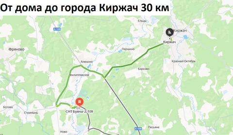 От дома до автобусной остановки 4,5 км, до автомобильной трассы 46К-7440 5 км, до города Киржач 30 км.Координаты чтобы подъехать: 56.050932, 38.610409.Два взрослых собственника.