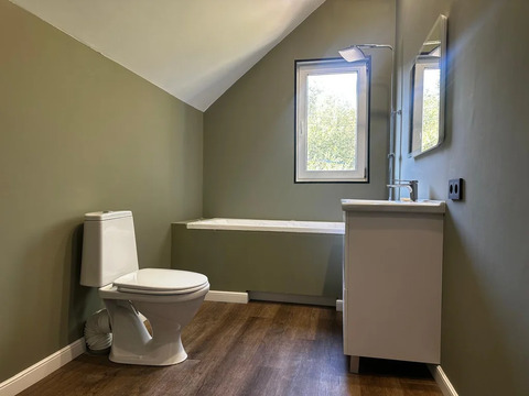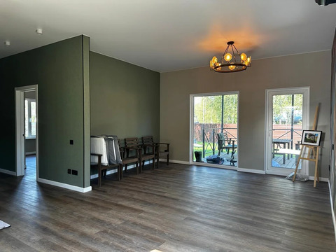 Коммуникации: Электричество 15 кВт, отопление электрическое - тепловым насосом (по цене газа), скважина, септик переливной 4 кольца, дренажный колодец.