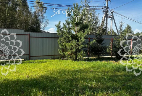Участок: 6 соток: огорожен забором из металлопрофиля, откатные автоматические ворота; парковка; на участке садовые и лесные деревья (берёза, сосны, ели), газон.