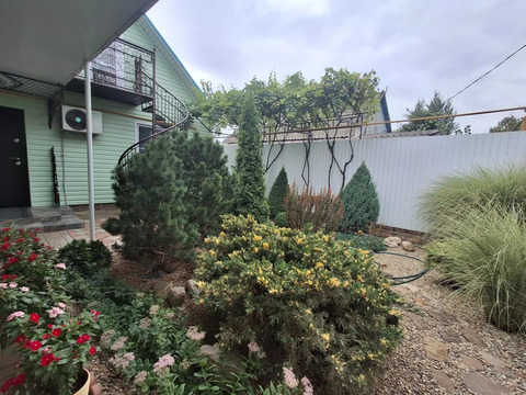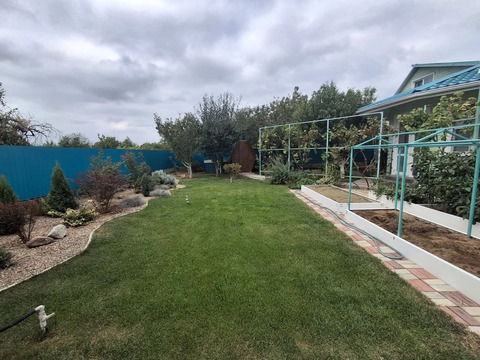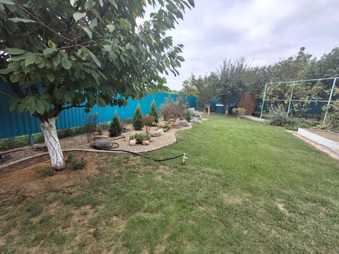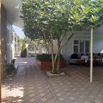 На участке растут плодовые деревья: инжир, груша, вишня, абрикос, персик и виноград. Они ухожены, и есть место для комфортного отдыха.