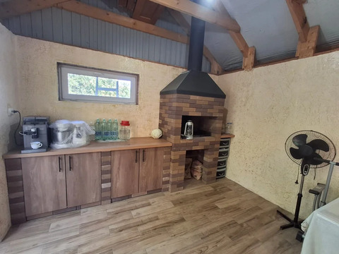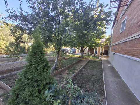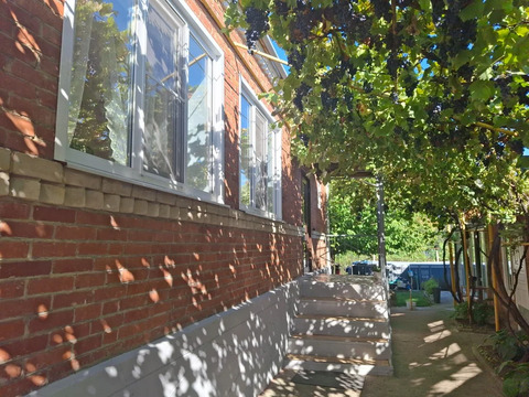 На территории летняя кухня с мангальной зоной, гараж, кладовая, теплица, летний душ и туалет. В саду растут черешня, яблони, персик, абрикос, вишня, крыжовник, смородина, груша, малина и виноград.