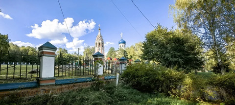 В 5 минутах пешком от дома река Пахра с пешеходным мостом, лес.