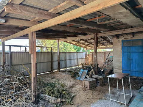 Рядом с домом расположены: летняя кухня и времянка. Участок хорошо благоустроен, на нём расположены хоз. постройки ,мастерская,подвал, курятник, есть отдельный заезд для авто крытый навесом.