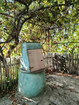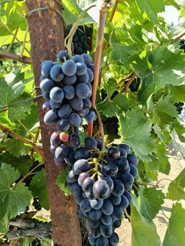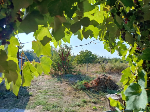 плодово-ягодные насаждения : виноградная беседка, яблоня, черешня, персики