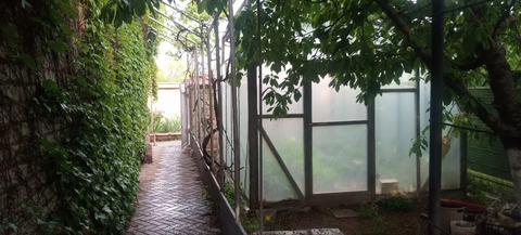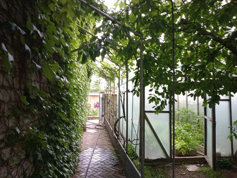Земельный участок ухоженный, прекрасный плодоносящий сад, декоративные растения, теплицы, навес, организована зона огорода с аккуратными грядками и тропинками.
