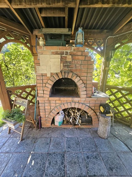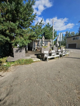 Отдельно на участке хозблок, баня с дровяной печью, комнатой отдыха, и с летней верандой и барбекю.