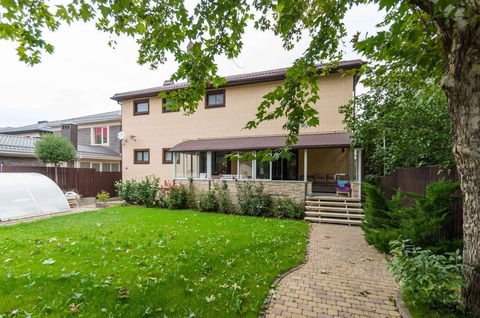 Дом расположен на участке 8 сот, полностью облагорожен: навес на 2 авто, бассейн на 50 куб. м, мангальная зона, беседка.