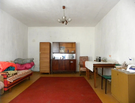 Общая площадь дома 91,5 м2: площадь жилых комнат 52,8 м2, просторная кухня 16,9 м2, санузел, котельная и веранда площадью 16,6 м2. Высота помещений 2,40 м. Над домом по всей площади расположен чердак. К дому пристроен гараж 15,5 м2 высотой 1,80 м с оборудованной смотровой ямой. Домик требует ремонта – не эксплуатировался 12 лет. Во дворе есть сарай 32,8 м2 и сад с фруктовыми деревьями – персик и черешня, а также орех.