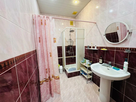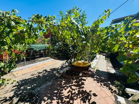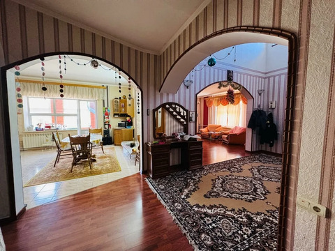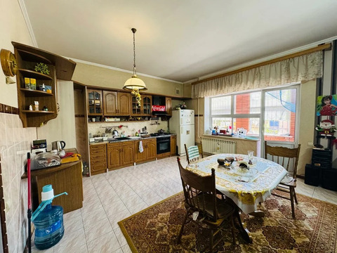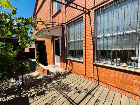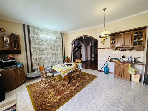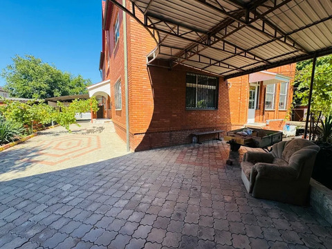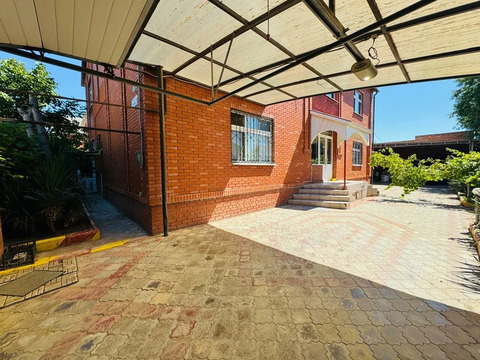 Продается двухэтажный дом в центре Темрюка. Площадь дома — 310 кв.м, участка — 6 соток. В доме 6 комнат, два санузла, несколько коридоров, холл, кухня, котельная и комната свободного назначения, которую можно использовать как гардеробную. Во дворе капитальный гараж и два навеса. По периметру участка кирпичный забор, двор вымощен плиткой.