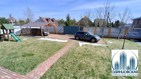 На участке: беседка, садовый домик, детская площадка, навес для 2 авто и площадка на три машины, газон, плодовые деревья 6-8 лет и кусты,