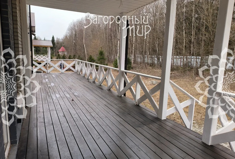 Лот 60190. Никольские хутора. СНТ Малинки. Современный новый и просторный коттедж со всеми центральными коммуникациями на прилесном участке в уютном коттеджном поселке, 240 кв.м, под ключ. Возведён из пеноблоков, утеплен, облицован кирпичом. У дома кровля - металлочерепица, окна - пластиковые стеклопакеты, перекрытия - монолитные железобетонные, монолитная ж/б лестница.