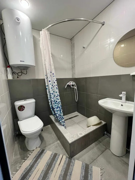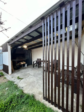 Участок ровный, правильной формы и широкий фасад. Здесь оборудована детская игровая зона с песочницей, качелями и турником, на лето устанавливается каркасный бассейн, а также есть мангальная зона. На территории растут плодовые деревья: инжир, слива, груша, гранат, две черешни, яблоня и шесть сортов винограда.