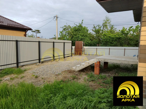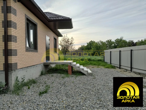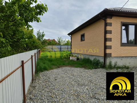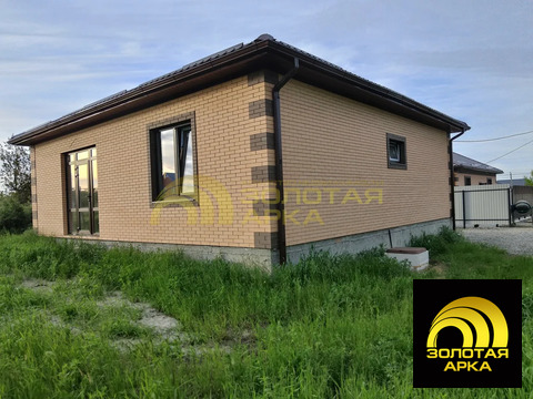 Продается кирпичный дом 100 м2 на участке 5 соток в станице Северской 2022 года постройки. В доме три комнаты: кухня-гостиная и 2 спальни. Из кухни- гостиной есть выход на задний двор, который можно оборудовать под террасу. Участок правильной формы, не подтопляется. В доме везде теплые полы. Отопление электрическое. Электричество 15 кВт 3-х фазное. Имеется скважина 30 метров и септик на 3,5 куба. В шаговой доступности школа, магазин Магнит, почта строительные и хозяйственные товары.