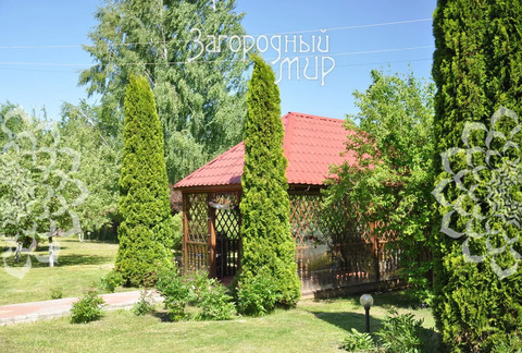 Участок 15 соток: гараж 25 кв.м, беседка 23 кв.м, теплица, выполнены ландшафтные работы, растут плодовые и лесные деревья и кустарники, цветы, оборудована подземная поливочная система, дренаж. Фасадная часть участка огорожена забором из металлопрофиля с автоматическими откатными воротами, перед которыми несколько соток земли, используемых собственниками.